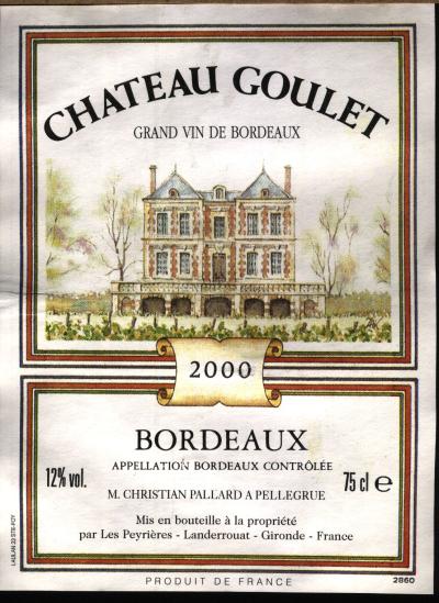 Chateua Goulet, 1993 or 2000 is a nice Bordeaux (though I personally prefer a heavier drier Bordeaux). This bottle was compliments of a friend at work, Mike Mestrovich.